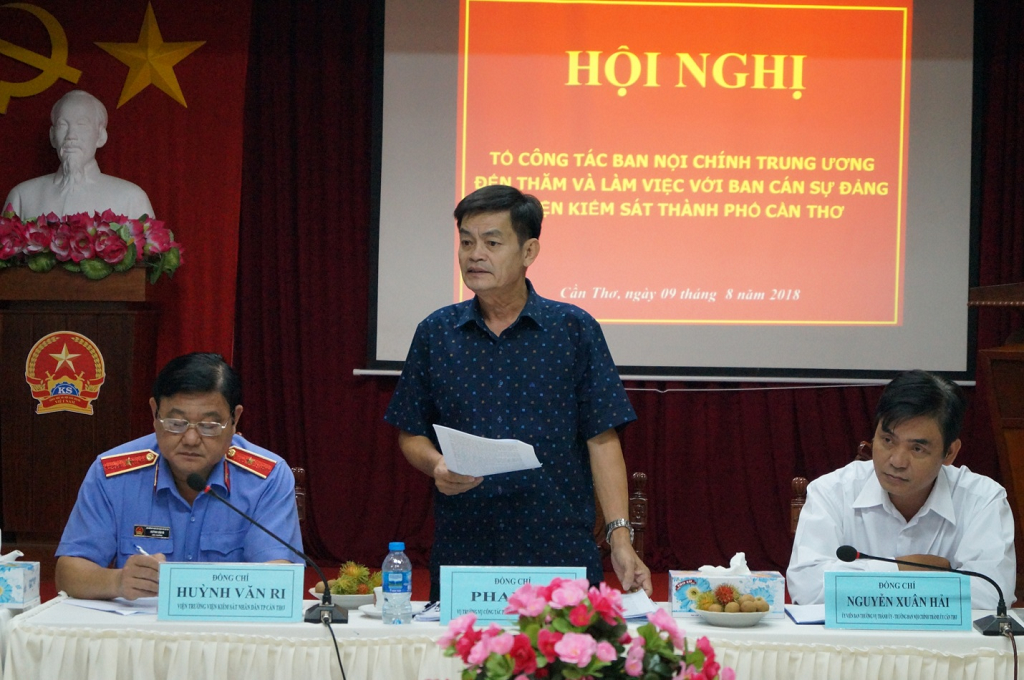 Kết luận tại buổi làm việc, đồng chí Phan Bá, Vụ trưởng Vụ Công tác phía Nam, Ban Nội chính Trung ương đánh giá cao kết quả thực hiện nhiệm vụ của Viện kiểm sát nhân dân thành phố Cần Thơ trong thời gian qua, nhất là việc không để oan sai và bỏ lọt tội phạm. Đồng thời, đồng chí Phan Bá cũng yêu cầu Viện kiểm sát nhân dân TP Cần Thơ triển khai một số nội dung như: Tiếp tục phối hợp tốt với Cơ quan Công an trong việc kịp thời phát hiện, xử lý các vụ, việc lên quan đến tôn giáo, dân tộc và nhất là các loại tội phạm về xâm phạm an ninh Quốc gia; quan tâm đến công tác kiến nghị chung giữa các cơ quan tư pháp trong phối hợp giải quyết các vụ án về tội xâm phạm trật tự, xã hội; tiếp tục triển khai thực hiện tốt công tác phòng, chống tham nhũng;…