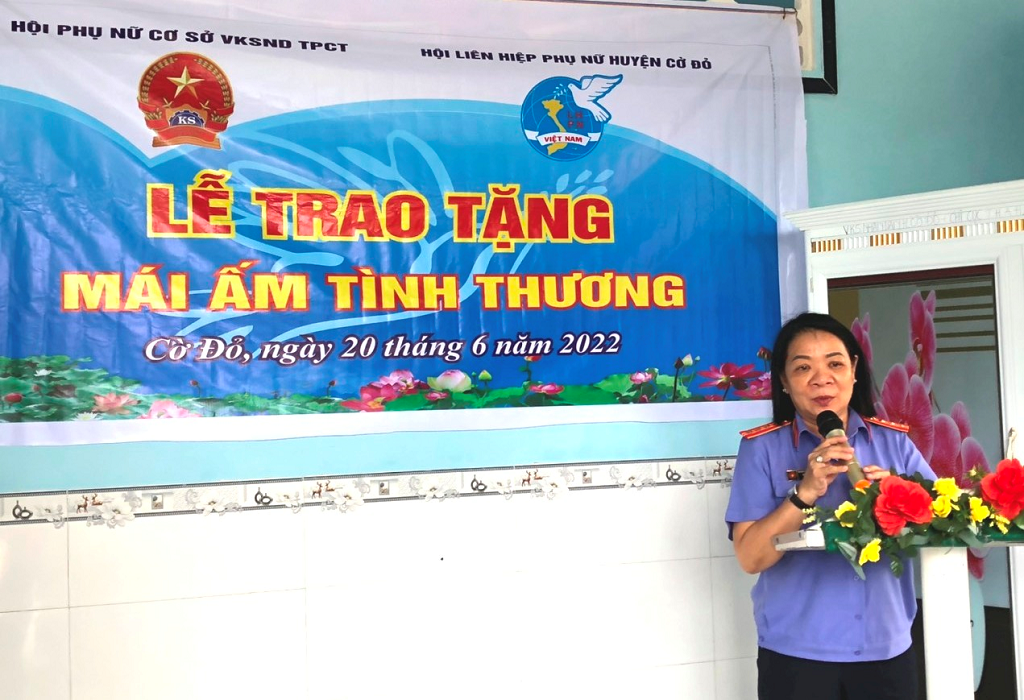 Thay mặt cho địa phương và Hội LHPN huyện, đồng chí Nguyễn Thị Thúy, Chủ tịch Hội LHPN huyện Cờ Đỏ gửi lời cảm ơn sâu sắc đến Hội Phụ nữ cơ sở VKSND TP. Cần Thơ, thời gian qua, đã cùng đồng hành với Hội LHPN huyện thực hiện nhiều chương trình ý nghĩa trong đó có việc hỗ trợ, xây dựng “mái ấm tình thương” cho hai bé Thạch Thị Quỳnh Kim và Thạch Thị Mỹ Phượng, góp phần thực hiện chủ trương, chính sách của Đảng và Nhà nước về chăm sóc, giáo dục và bảo vệ trẻ em.