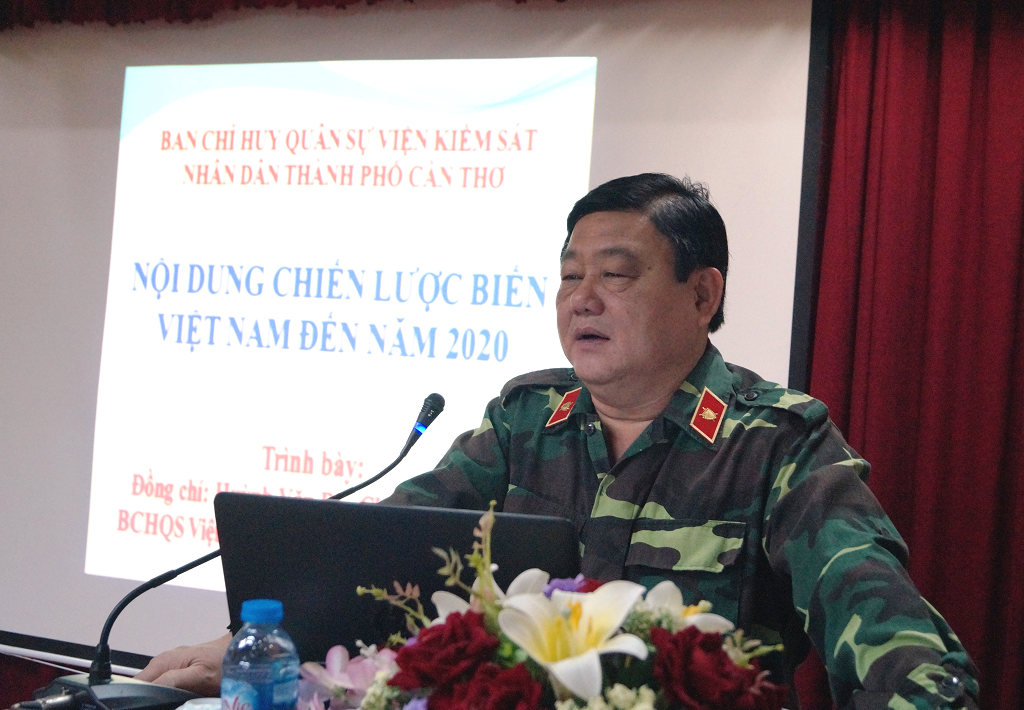 Đ/c Huỳnh Văn Ri, Chỉ huy trưởng Ban chỉ huy quân sự VKSND TP. Cần Thơ huấn luyện cho lực lượng tự vệ cơ quan