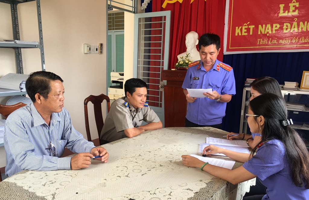 Vừa qua, Viện kiểm sát nhân dân huyện Thới Lai tiến hành trực tiếp kiểm sát việc tuân theo pháp luật trong thi hành án dân sự đối với Chi cục thi hành án dân sự huyện Thới Lai từ ngày 26 tháng 7 năm 2018 đến ngày 03 tháng 8 năm 2018 theo kế hoạch đã đề ra.