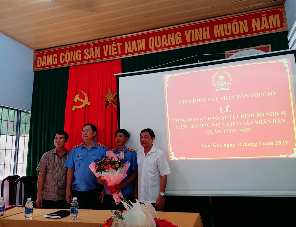 Tại buổi lễ đồng chí Đỗ Công Tâm - Trưởng phòng Tổ chức cán bộ, công bố Quyết định số 190/QĐ-VKSTC ngày 16/5/2019 của Viện kiểm sát nhân dân tối cao về việc bổ nhiệm ông Lê Hồng Thu, Kiểm sát viên trung cấp, Trưởng phòng thực hành quyền công tố, kiểm sát điều tra, kiểm sát xét xử sơ thẩm án hình sự về kinh tế, chức vụ (phòng 3) Viện kiểm sát nhân dân thành phố Cần Thơ giữ chức vụ Viện trưởng Viện kiểm sát nhân dân quận Thốt Nốt, thành phố Cần Thơ kể từ ngày 01/6/2019.