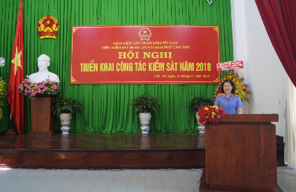 Phát biểu chỉ đạo Hội nghị, đồng chí Nguyễn Thị Thủy Khiêm, Phó Viện trưởng VKSND tối cao biểu dương các kết quả mà toàn ngành Kiểm sát thành phố Cần Thơ đạt được trong năm qua. Qua đó, đồng chí cũng gửi lời cảm ơn đến Thành ủy, UBND và các ban ngành hữu quan đã hỗ trợ, tạo điều kiện cho ngành kiểm sát thành phố Cần Thơ hoàn thành nhiệm vụ công tác năm 2017. Bên cạnh đó, đồng chí nhấn mạnh: “ Hai cấp kiểm sát thành phố Cần Thơ cần tiếp tục quán triệt và thực hiện nghiêm túc các Luật, Bộ luật, nghị quyết và Chỉ thị 01/CT-VKSTC, ngày 28 tháng 12 năm 2016 của Viện trưởng VKSNDTC về “Đoàn kết, đổi mới - Trách nhiệm, kỷ cương - Chất lượng, hiệu quả” trong ngành KSND; Chú trọng quan tâm đến công tác đấu tranh phòng chống tham nhũng trong nội bộ ngành; Chú trọng đến công tác điều động, luận chuyển đội ngũ cán bộ, KSV trong thực hiện nhiệm vụ; đặc biệt là chú trọng việc nâng cao chất lượng, hiệu quả công tác kiểm sát việc giải quyết vụ án dân sự, hành chính, kinh doanh thương mại, lao động, phá sản doanh nghiệp và những việc khác theo quy định của pháp luật; Nâng cao vị trí, vai trò của người đứng đầu trong công tác quản lý, chỉ đạo, điều hành…