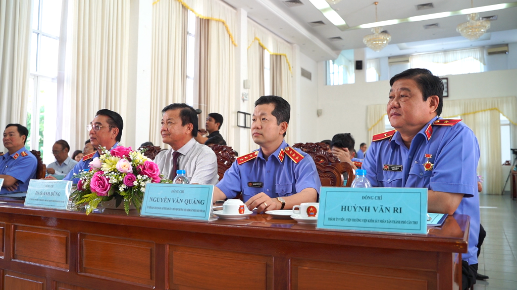 Ngoài ra, Hội nghị còn có sự tham dự của Đại diện lãnh đạo HĐND; UBND; Ban Nội chính; Công an, Tòa án; Cục Thi hành án; Ban Thi đua- khen thưởng; Đại diện lãnh đạo các Cục, Vụ, Viện trực thuộc VKSND tối cao. Về phía VKSND TP. Cần Thơ có các đồng chí trong Ban lãnh đạo Viện; Các đồng chí Trưởng phòng, Phó trưởng phòng; Viện trưởng VKSND 09 quận, huyện và toàn thể các đồng chí kiểm sát viên trung cấp trực thuộc VKSND thành phố Cần Thơ.