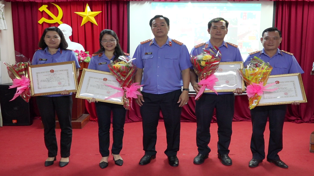 Đ/c Huỳnh Việt Thanh, Phó Bí thư Đảng ủy, Phó Viện trưởng VKSND TP.Cần Thơ trao Giấy khen cho 04 cá nhân thuộc Phòng 3