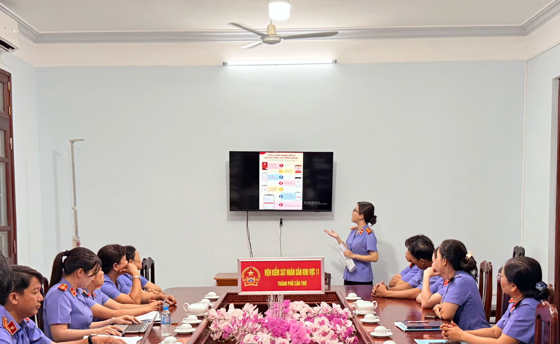 Tham dự buổi tuyên truyền có đồng chí Huỳnh Kim Thu, Bí thư Chi bộ, Viện trưởng VKSND Khu vực 11 cùng các đồng chí là Phó Viện trưởng, Kiểm sát viên, công chức và người lao động của đơn vị.