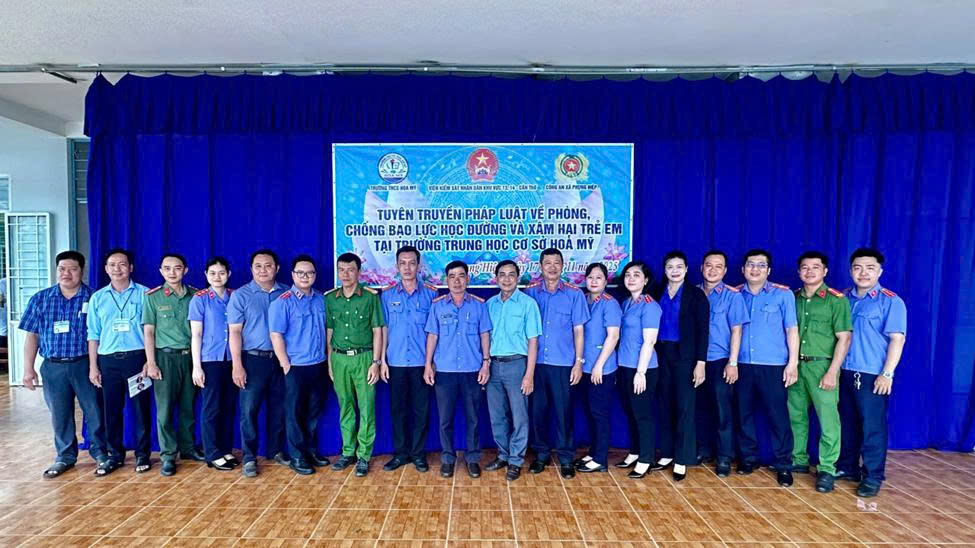 Thực hiện Kế hoạch số 11/KHPH-VKS-CA-TH ngày 10/11/2025 của Viện kiểm sát nhân dân khu vực 13 - Cần Thơ về việc phối hợp tuyên truyền pháp luật về phòng, chống bạo lực học đường, xâm hại trẻ em tại Trường Trung học cơ sở Hoà Mỹ. Sáng ngày 17/11/2025, tại Trường Trung học cơ sở Hòa Mỹ, Viện kiểm sát nhân dân (VKSND) Khu vực 13 phối hợp cùng VKSND Khu vực 14, Công an xã Phụng Hiệp và Ban Giám hiệu trường Trung học cơ sở Hòa Mỹ tổ chức hoạt động “Tuyên truyền pháp luật về phòng, chống bạo lực học đường và xâm hại trẻ em” cho toàn thể học sinh.