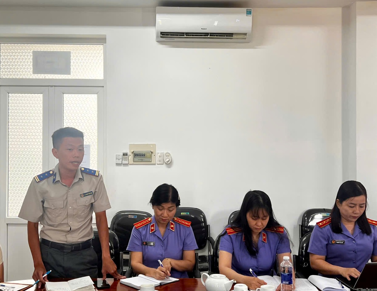 Sau khi nghe đại diện Đoàn kiểm sát công bố dự thảo Kết luận, các đồng chí Chấp hành viên, công chức của đơn vị được kiểm sát tham gia thảo luận đều cơ bản thống nhất nội dung dự thảo. Bên cạnh đó, cũng có ý kiến giải trình đối với những hạn chế, khó khăn trong quá trình tiếp nhận, bảo quản, xử lý vật chứng và quá trình tổ chức thi hành án. Đồng thời, thực hiện ngay việc tổ chức thi hành án nhằm sớm khắc phục được các vi phạm còn tồn tại đã được Đoàn kiểm sát chỉ ra.