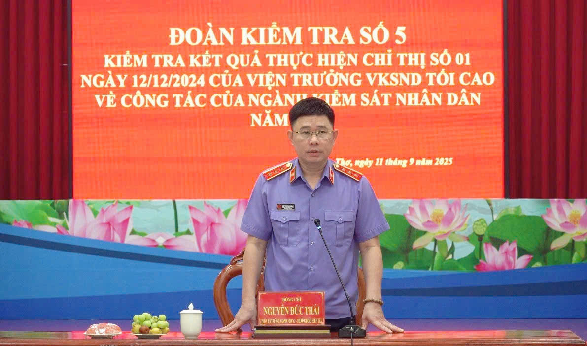 Trong hai ngày 11 và 12/9/2025, Đoàn kiểm tra số 5 Viện kiểm sát nhân dân (VKSND) tối cao tiến hành kiểm tra toàn diện việc thực hiện Chỉ thị 01/CT-VKSTC ngày 12/12/2024 của Viện trưởng VKSND tối cao về công tác năm 2025 của ngành Kiểm sát nhân dân tại VKSND thành phố Cần Thơ.