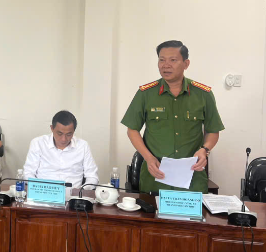 Ảnh: Đồng chí Trần Hoàng Độ, Phó Giám đốc Công an thành phố Cần Thơ phát biểu, góp ý kiến tại Hội nghị