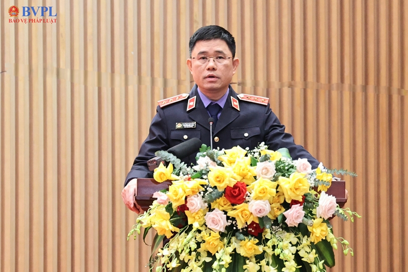 Đồng chí Trần Hải Quân, Phó Viện trưởng VKSND tối cao phát biểu.