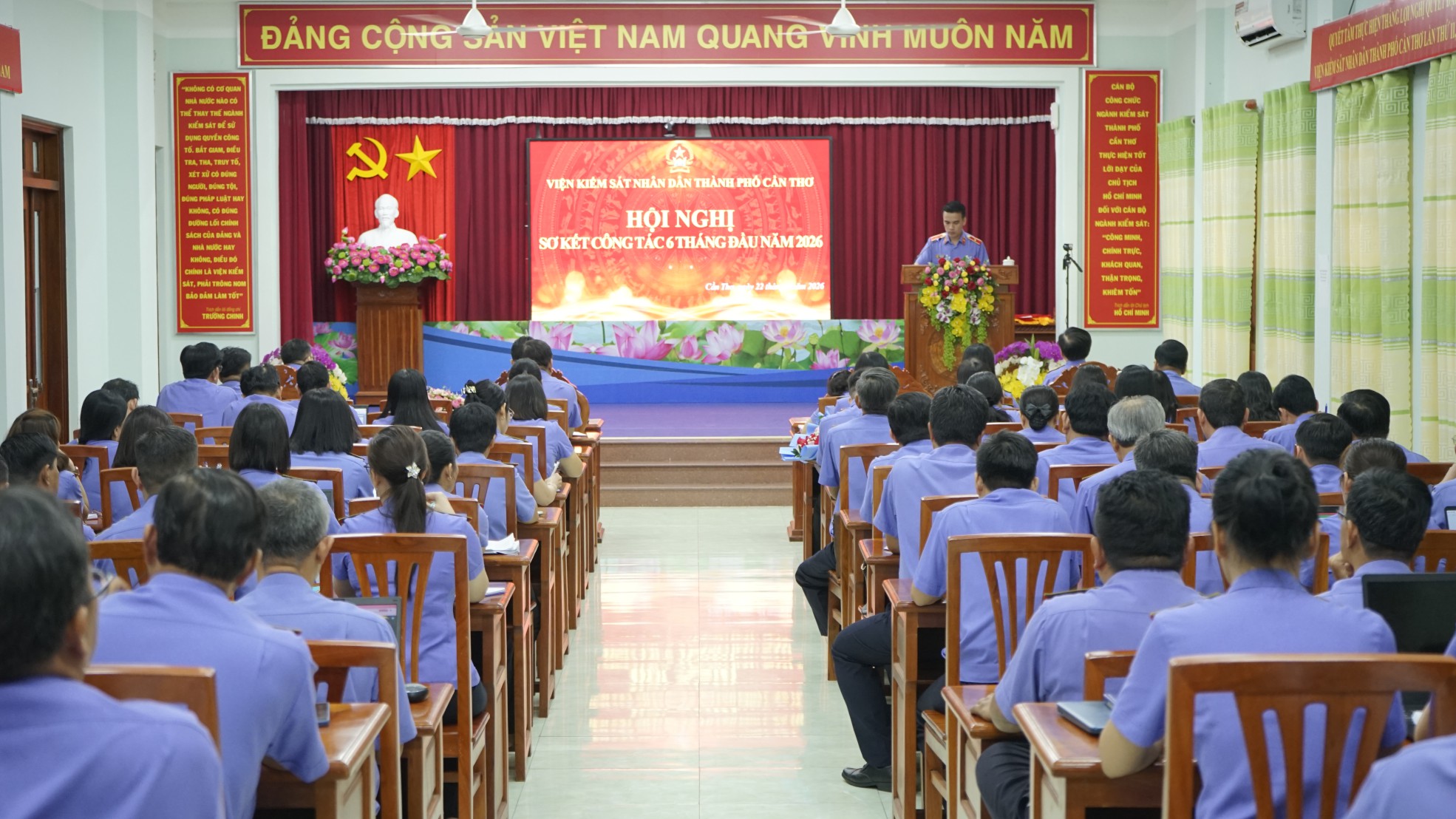Sáng ngày 22/4/2026, Viện kiểm sát nhân dân thành phố Cần Thơ (VKSND thành phố) tổ chức Hội nghị sơ kết công tác 6 tháng đầu năm 2026 theo hình thức trực tiếp tại trụ sở đơn vị, kết hợp trực tuyến đến các VKSND khu vực. Đồng chí Phạm Xuân Minh, Viện trưởng VKSND thành phố, dự và chủ trì Hội nghị.