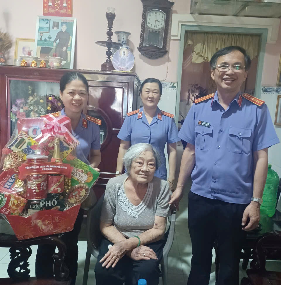 Đồng chí Lê Nguyễn Trường Sơn, Phó Bí thư Đảng uỷ, Phó Viện trưởng VKSND thành phố Cần Thơ cùng Đoàn thăm, chúc Tết gia đình đồng chí Nguyễn Việt Hoàn - nguyên Phó Viện trưởng VKSND tỉnh Sóc Trăng (cũ).