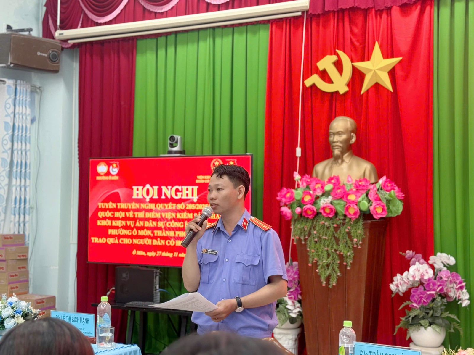 Thực hiện Kế hoạch số 11/KH-ĐTN ngày 21/11/2025 của Đoàn TNCS Hồ Chí Minh VKSND thành phố Cần Thơ về việc tổ chức tuyên truyền Nghị quyết số 205/2025/QH15 của Quốc hội, vừa qua, tại Hội trường Ủy ban nhân dân quận Ô Môn, VKSND Khu vực 2 phối hợp cùng Đoàn TNCS Hồ Chí Minh VKSND thành phố Cần Thơ và Đoàn phường Ô Môn tổ chức Hội nghị tuyên truyền chuyên đề “Thí điểm để Viện kiểm sát nhân dân khởi kiện vụ án dân sự nhằm bảo vệ các chủ thể yếu thế và lợi ích công”.