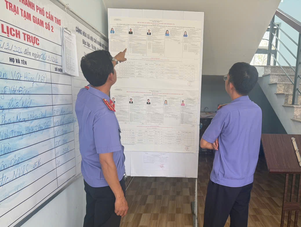 Đoàn kiểm sát việc thực hiện niêm yết danh sách ứng cử đại biểu Quốc hội khoá XVI và đại biểu Hội đồng nhân dân các cấp nhiệm kỳ 2026 -2031 tại Trại tạm giam số 2 Công an thành phố Cần Thơ