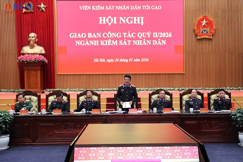 Sáng 26/1, VKSND tối cao tổ chức Hội nghị giao ban công tác Quý II/2026. Đồng chí Nguyễn Huy Tiến, Ủy viên Trung ương Đảng, Bí thư Đảng ủy, Viện trưởng VKSND tối cao dự và phát biểu chỉ đạo, kết luận Hội nghị.