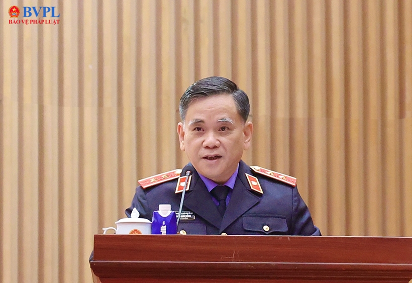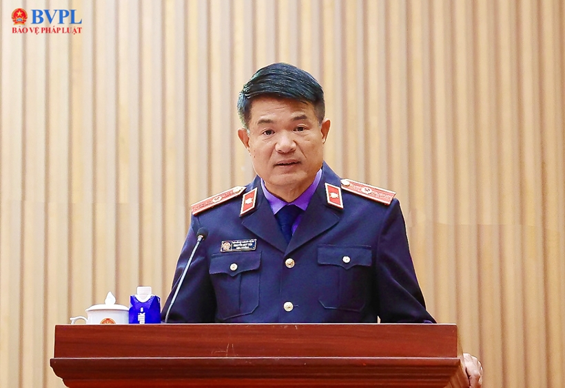 Đồng chí Đỗ Mạnh Bổng, Vụ trưởng Vụ 9, VKSND tối cao báo cáo tóm tắt quá trình xây dựng, nội dung