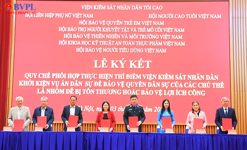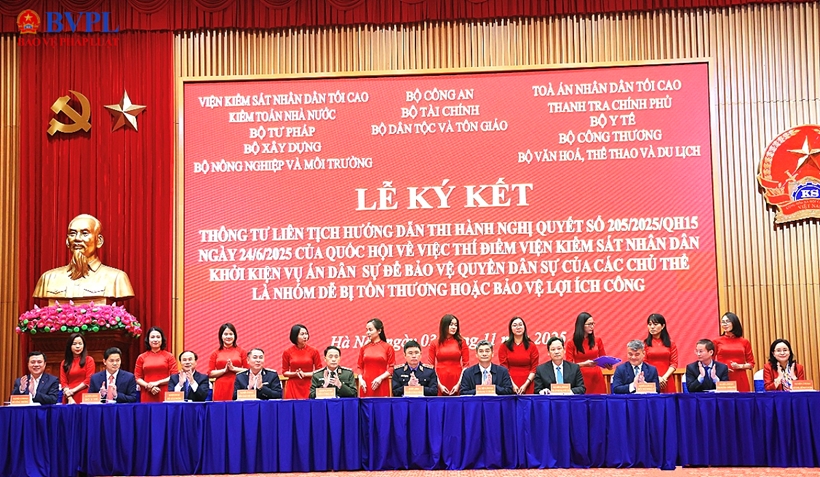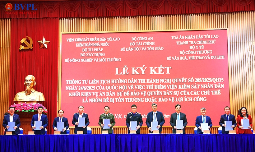 Chiều ngày 3/11, tại Hà Nội, VKSND tối cao đã chủ trì tổ chức Lễ ký Thông tư liên tịch hướng dẫn thi hành Nghị quyết số 205/2025/QH15 ngày 24/6/2025 của Quốc hội về việc thí điểm VKSND khởi kiện vụ án dân sự để bảo vệ quyền dân sự của các chủ thể là nhóm dễ bị tổn thương hoặc bảo vệ lợi ích công; Việc ký Quy chế phối hợp thực hiện thí điểm VKSND khởi kiện vụ án dân sự để bảo vệ quyền dân sự của các chủ thể là nhóm dễ bị tổn thương hoặc bảo vệ lợi ích công.