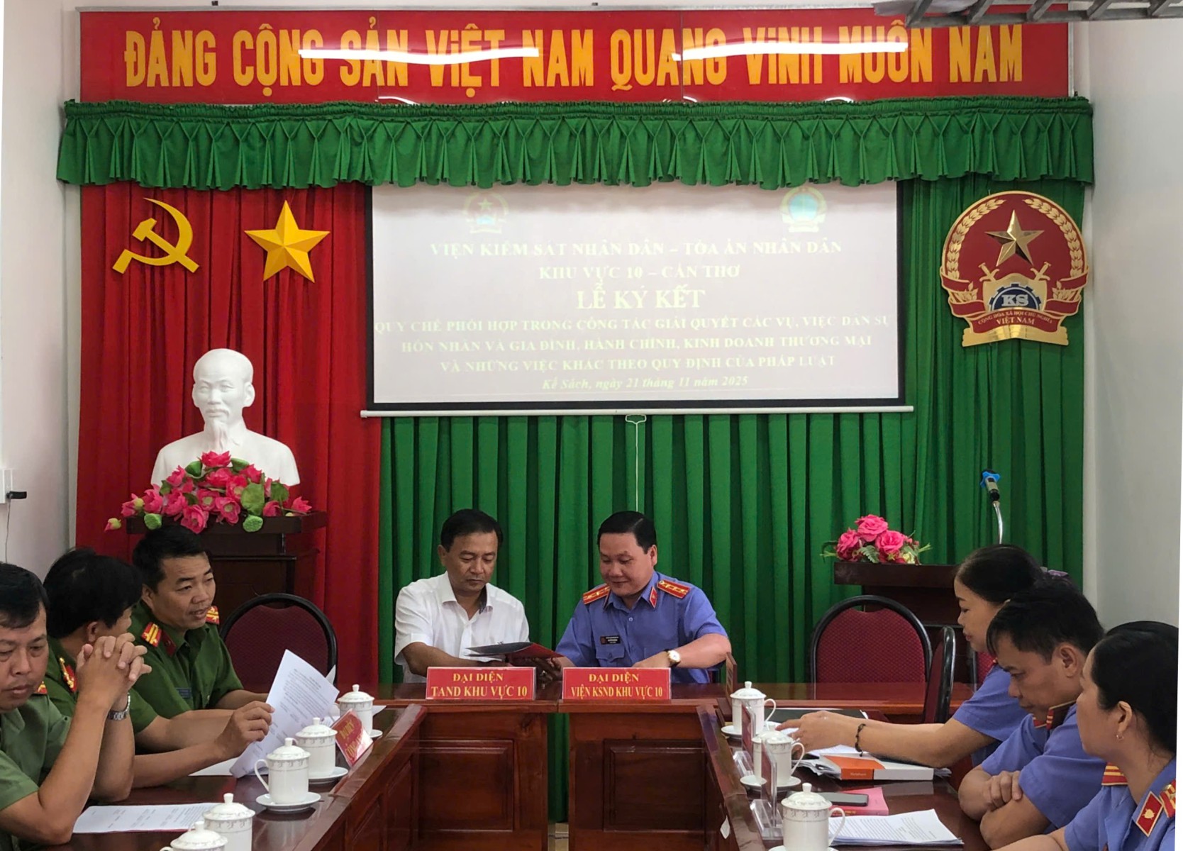 Vừa qua, Viện kiểm sát nhân dân (VKSND) Khu vực 10 - Cần Thơ đã tổ chức Lễ ký kết Quy chế phối hợp trong công tác giải quyết vụ việc dân sự, hôn nhân và gia đình, vụ án hành chính, vụ việc kinh doanh thương mại, lao động và những việc khác theo quy định của pháp luật.