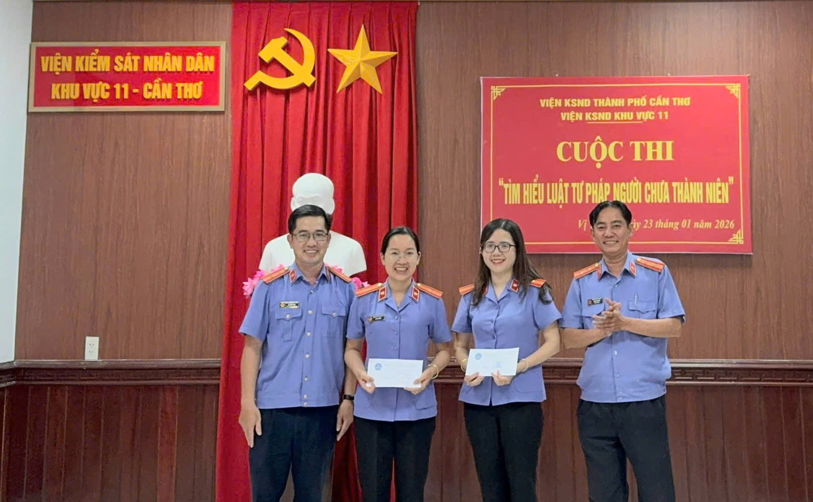 Thực hiện theo Kế hoạch số 09/KH-VKS-KV11 ngày 15/01/2026 của Viện trưởng Viện kiểm sát nhân Khu vực 11 - Cần Thơ (VKSND Khu vực 11) về tổ chức Cuộc thi “Tìm hiểu Luật tư pháp người chưa thành niên”, vừa qua, VKSND Khu vực 11 đã tổ chức cuộc thi với sự hăng hái tham gia của công chức, Kiểm sát viên trong đơn vị và tổng kết trao giải cho các cá nhân đạt điểm cao nhất trong cuộc thi.