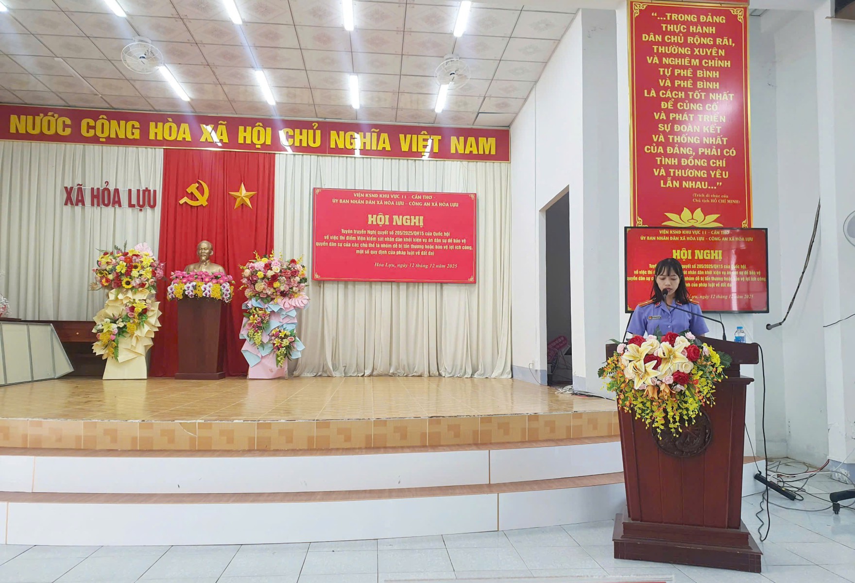 Vừa qua, tại trụ sở Uỷ ban nhân dân xã Hỏa Lựu, thành phố Cần Thơ, VKSND Khu vực 11 phối hợp với UBND xã Hỏa Lựu, Công an xã Hỏa Lựu tổ chức buổi tuyên truyền, phổ biến Nghị quyết số 205/2025/QH15 của Quốc hội, một số quy định của Luật đất đai năm 2024 và pháp luật về phòng, chống ma túy cho cán bộ và Nhân dân địa phương.