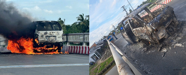 Hình ảnh xe bị thiêu rụi tại hiện trường