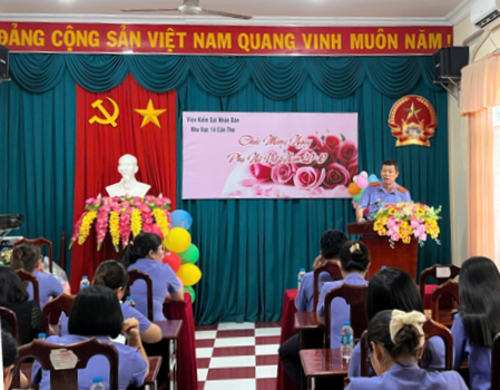 Tại buổi họp mặt, đồng chí Phan Phát Tấn, Viện trưởng VKSND Khu vực 14 - Cần Thơ phát biểu ôn lại lịch sử và truyền thống vẻ vang của Hội Liên hiệp Phụ nữ Việt Nam qua các thời kỳ, đồng thời ghi nhận công lao đóng góp của chị em phụ nữ trong đơn vị.