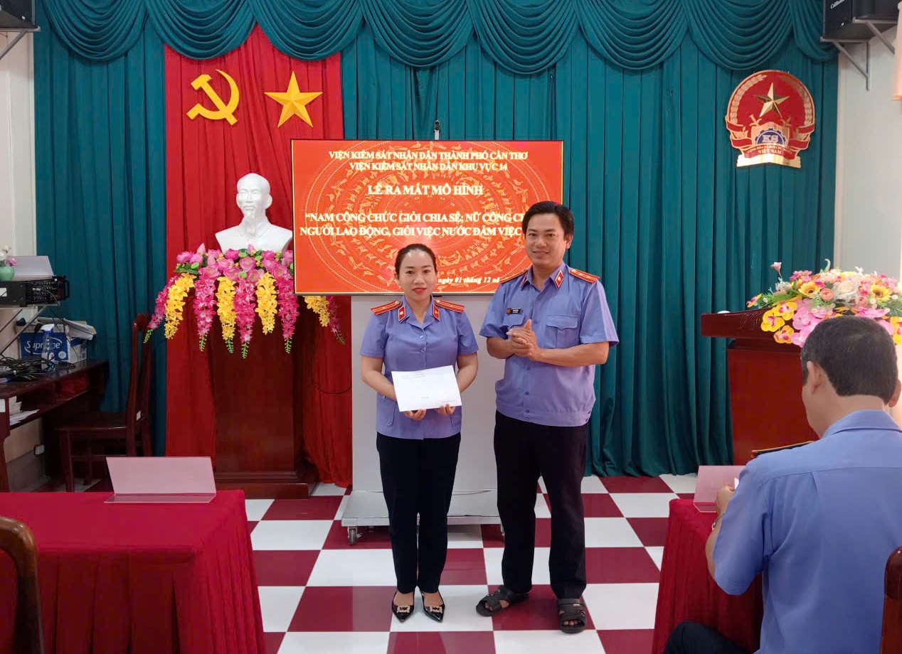 Thực hiện Kế hoạch số 10/KH-VKS ngày 17/11/2025 của Viện kiểm sát nhân dân thành phố Cần Thơ và Kế hoạch số 203/KH-VKS ngày 20/11/2025 của Viện kiểm sát nhân khu vực 14 về tổ chức Tháng hành động vì bình đẳng giới và phòng ngừa, ứng phó với bạo lực trên cơ sở giới năm 2025. Vừa qua, Viện kiểm sát nhân dân khu vực 14 đã xây dựng và tổ chức Lễ ra mắt mô hình “Nam công chức giỏi chia sẻ; nữ công chức, người lao động đảm việc nước, giỏi việc nhà”.