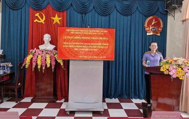 Căn cứ Kế hoạch số 10/KH-VKS ngày 17/11/2025 của Viện kiểm sát nhân dân thành phố Cần Thơ về tổ chức Tháng hành động vì bình đẳng giới và phòng ngừa, ứng phó với bạo lực trên cơ sở giới năm 2025; nhằm thực hiện có hiệu quả các hoạt động hưởng ứng Tháng hành động, tiếp tục đổi mới, đẩy mạnh phong trào thi đua, khơi dậy tinh thần thi đua sôi nổi trong công chức, người lao động trong đơn vị. Viện kiểm sát nhân dân (VKSND) Khu vực 14 đã ban hành Kế hoạch số 200/KH-VKS ngày 19/11/2025 và tổ chức Lễ phát động phong trào thi đua nội bộ “Tích cực hưởng hứng Tháng hành động vì bình đẳng giới và phòng ngừa, ứng phó với bạo lực trên cơ sở giới năm 2025”.