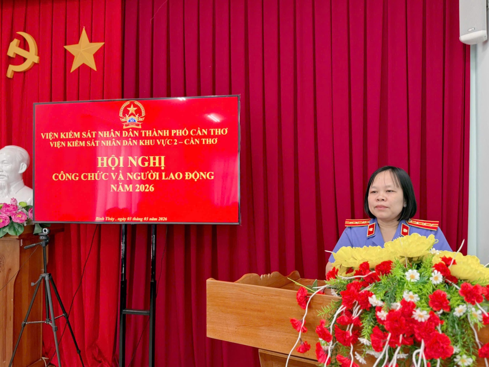 Ngày 03/3/2026, Viện kiểm sát nhân dân Khu vực 2 - Cần Thơ (VKSND Khu vực 2) đã tổ chức thành công Hội nghị công chức, người lao động năm 2026 nhằm đánh giá kết quả thực hiện nhiệm vụ công tác năm 2025 và đề ra phương hướng, nhiệm vụ năm 2026.