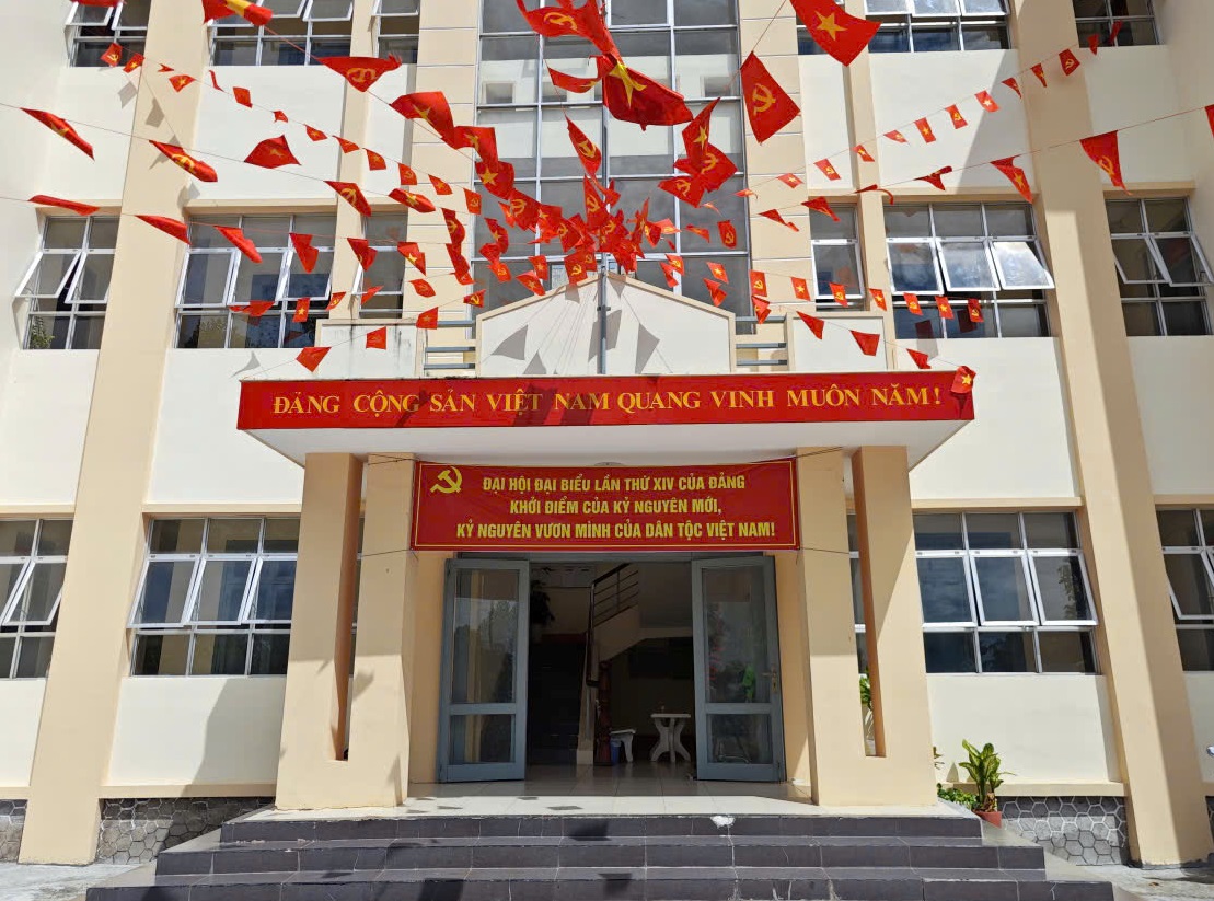 Trụ sở VKSND Khu vực 2 - Cần Thơ treo cờ, băng rôn, khẩu hiệu tuyên truyền về Đại hội lần thứ XIV của Đảng