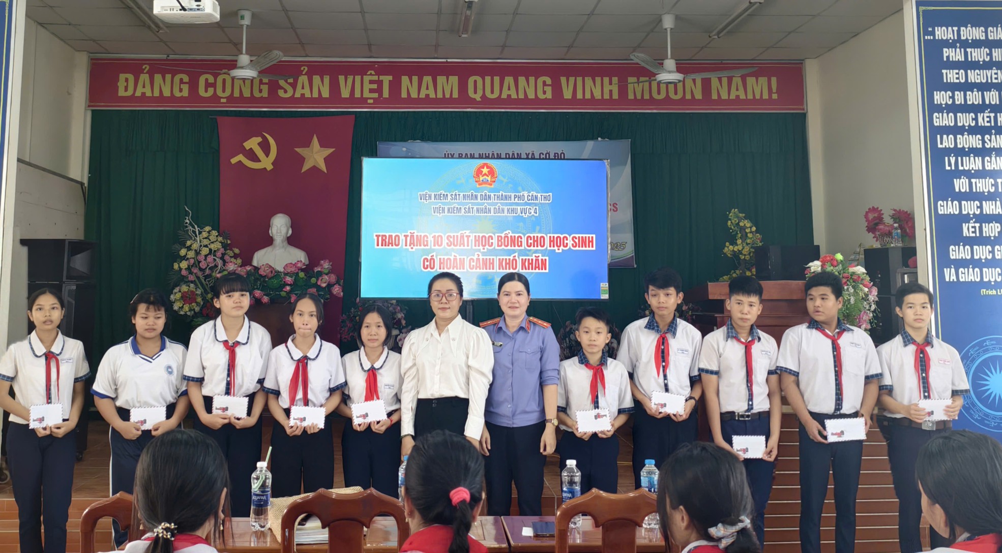 Bên cạnh phần tuyên truyền, Ban Tổ chức đã trao 10 suất học bổng cho những học sinh có hoàn cảnh khó khăn, nhằm động viên tinh thần và tiếp thêm động lực để các em vươn lên trong học tập. Đây là hoạt động mang ý nghĩa nhân văn sâu sắc, thể hiện sự quan tâm của VKSND Khu vực 4 đối với thế hệ trẻ.