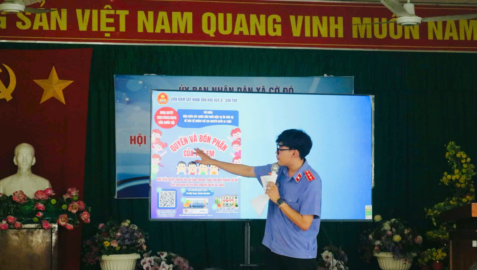 Đồng chí Huỳnh Lâm Trường, Chuyên viên VKSND Khu vực 4 giới thiệu về quyền và bổn phận của trẻ em