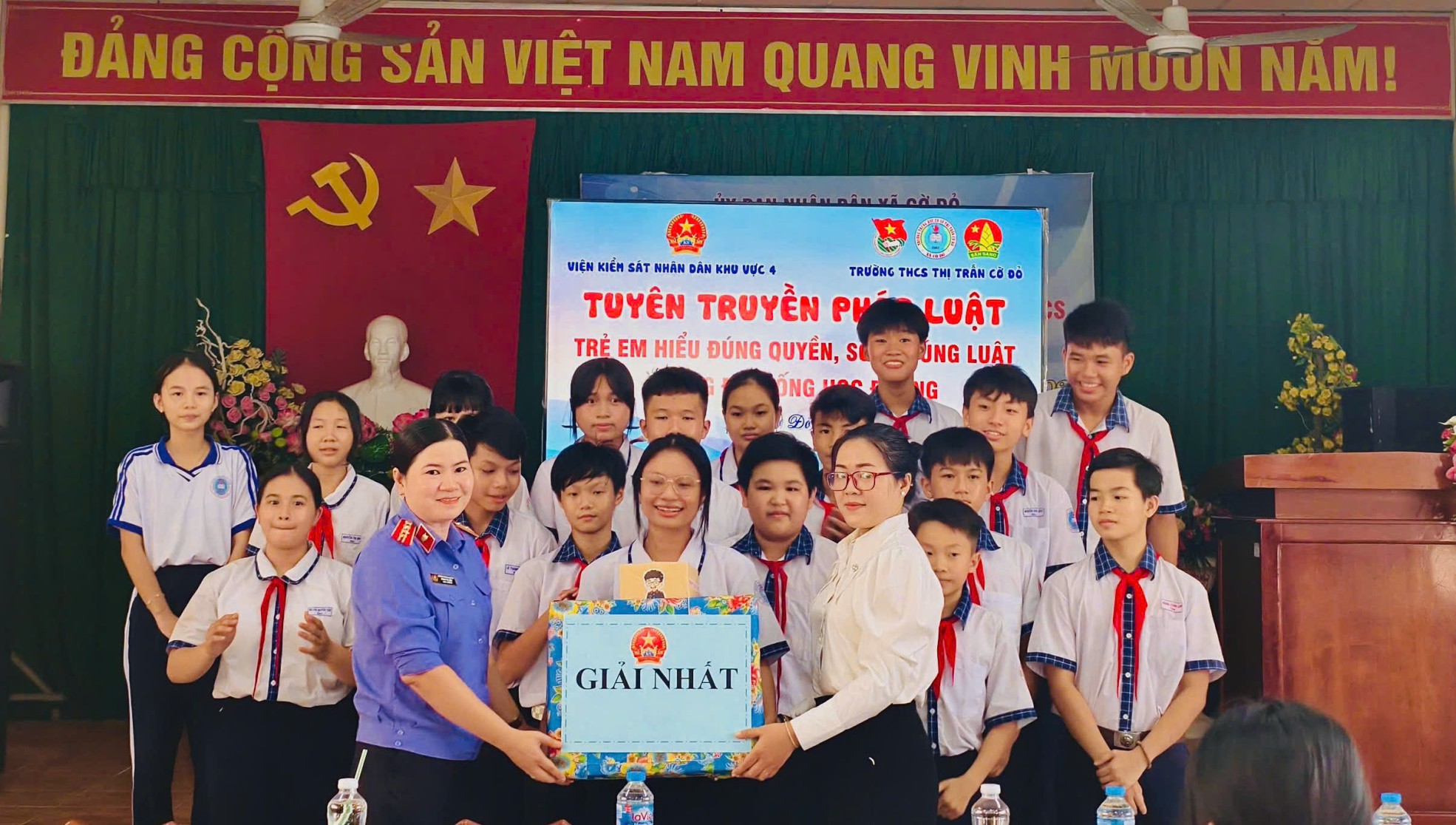 Đại diện Lãnh đạo VKSND Khu vực 4 và Trường THCS thị trấn Cờ Đỏ trao giải Nhất cho đội thi xuất sắc