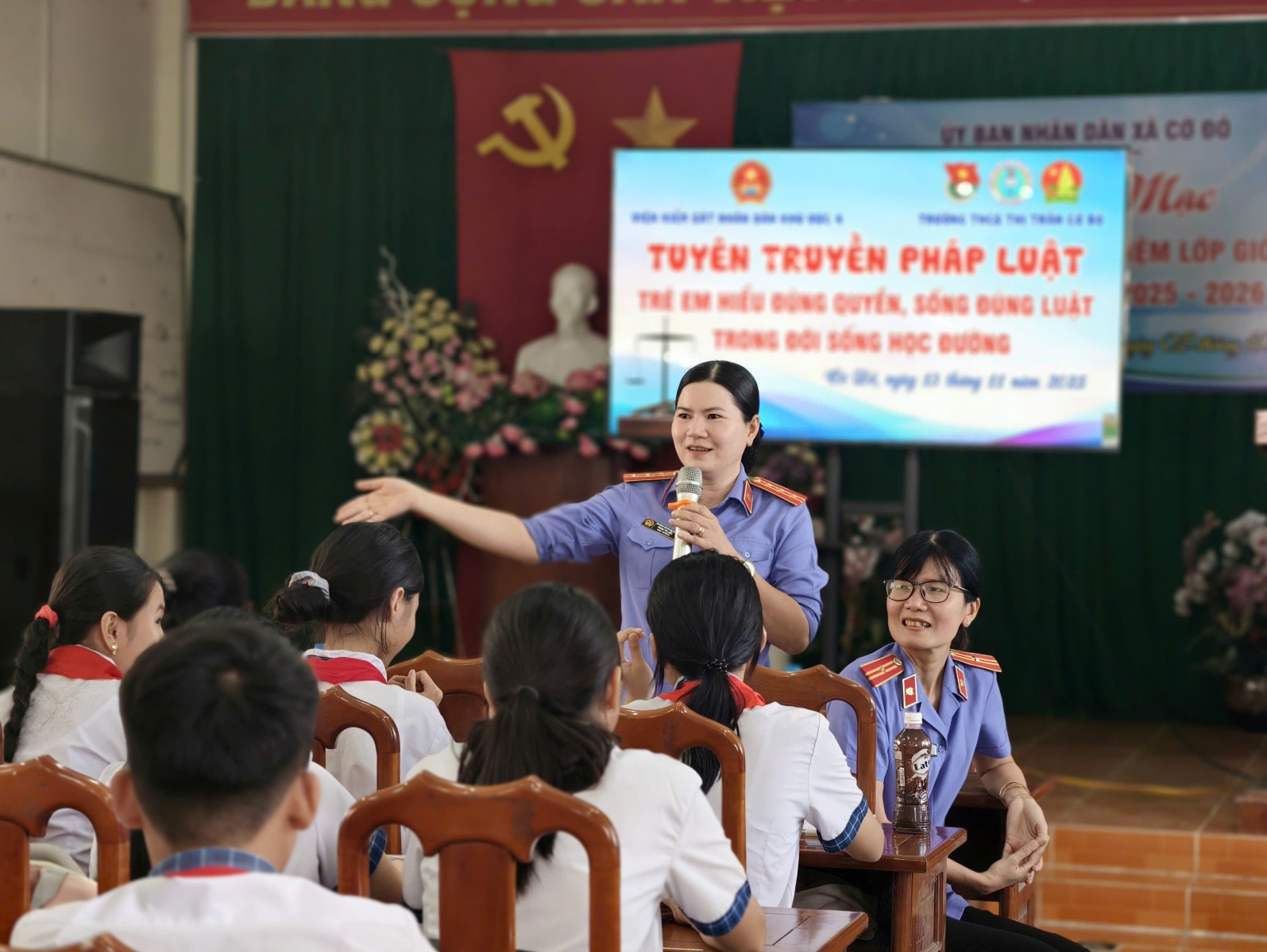 Đồng chí Phan Thị Liễu, Viện trưởng VKSND Khu vực 4 chia sẻ kiến thức pháp luật đến các em học sinh
