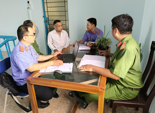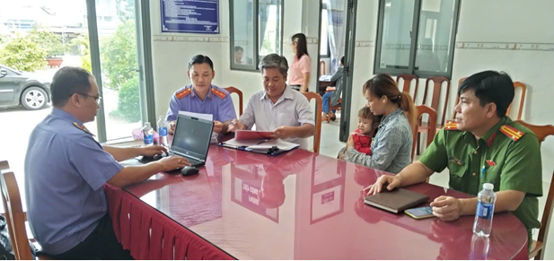 Ảnh 1: Đ/c Nguyễn Công Khánh - Phó Viện trưởng, trực tiếp gặp hỏi người bị kết án đang được tạm đình chỉ tại Ủy ban nhân dân xã Vĩnh Thạnh, thành phố Cần Thơ.