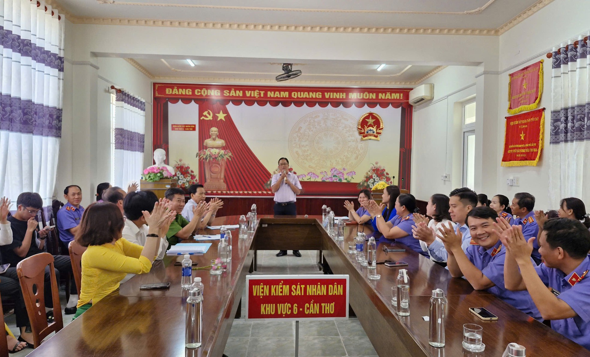 Lãnh đạo cùng các thí sinh thuộc các đơn vị VKSND Khu vực 6, TAND Khu vực 6, Công an xã Phú Tâm chụp ảnh lưu niệmcủa đơn vị VKSND Khu vực 6 - Cần Thơ