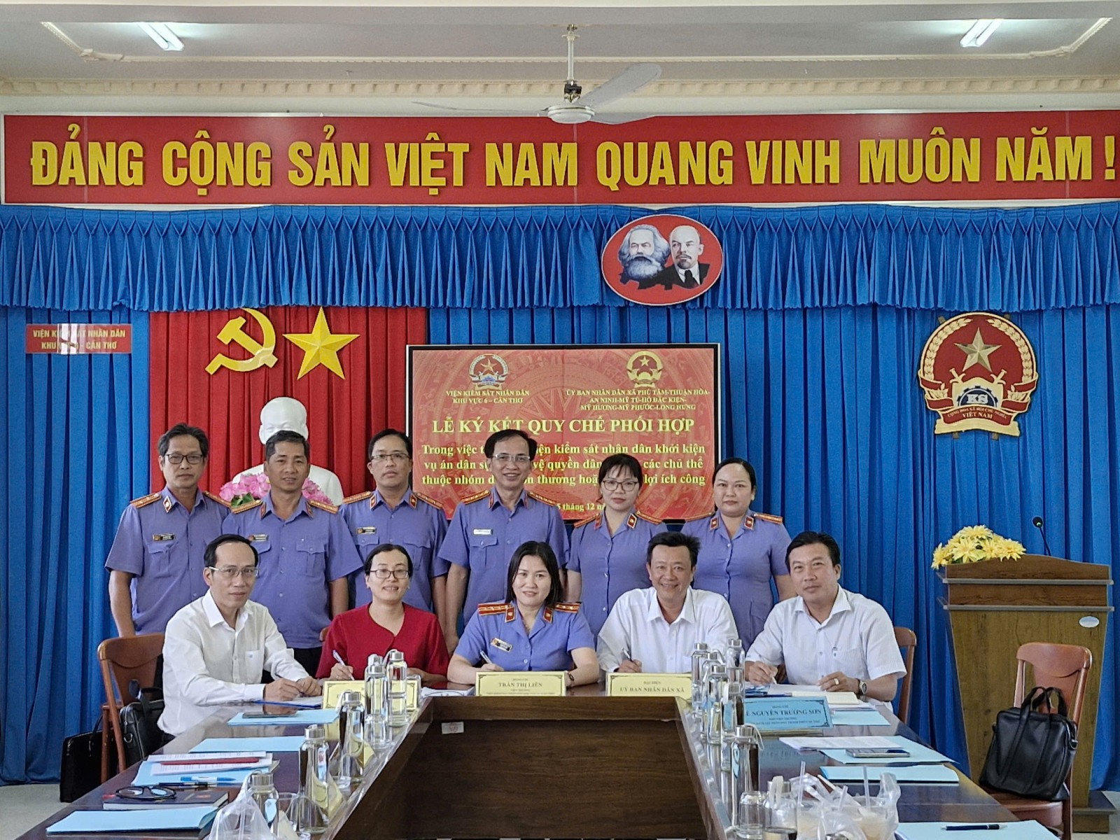 Ngày 05/12/2025, VKSND khu vực 6 - Cần Thơ tổ chức Lễ ký kết Quy chế phối hợp thực hiện thí điểm Viện kiểm sát nhân dân khởi kiện vụ án dân sự để bảo vệ quyền dân sự của các chủ thể là nhóm dễ bị tổn thương hoặc bảo vệ lợi ích công với Ủy ban nhân dân các xã trên địa bàn, bao gồm xã: Mỹ Tú, Mỹ Hương, Mỹ Phước, Long Hưng, Phú Tâm, Thuận Hòa, An Ninh, Hồ Đắc Kiện.