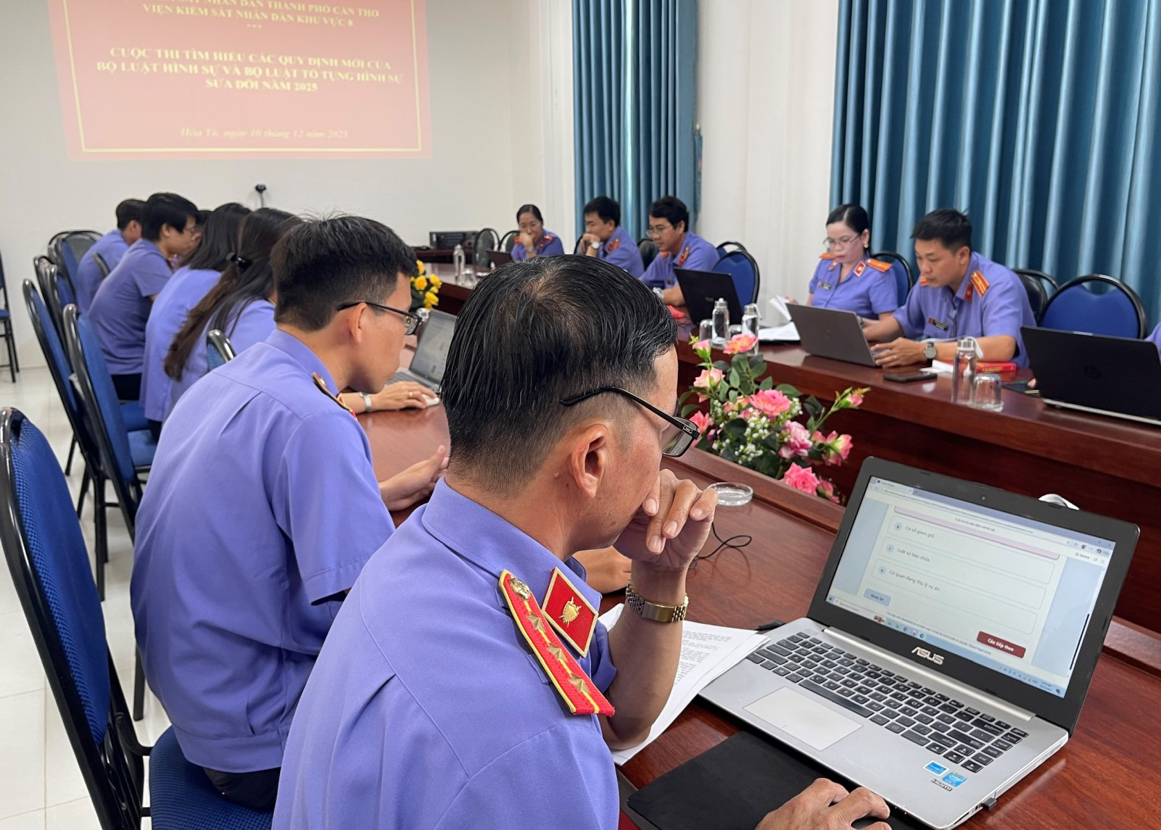 Thực hiện Kế hoạch số 373/KH-VKS ngày 12/12/2025 của Viện trưởng Viện kiểm sát nhân dân (VKSND) Khu vực 8 - Cần Thơ về tổ chức cuộc thi tìm hiểu những quy định mới của pháp luật, nhằm phát động phong trào thi đua tìm hiểu pháp luật, nâng cao trình độ chuyên môn, kiến thức cho đội ngũ Kiểm sát viên, công chức tại đơn vị, đảm bảo việc nắm bắt kịp thời, đầy đủ các quy định mới, quan trọng của pháp luật để vận dụng có hiệu quả trong thực tiễn công tác. VKSND Khu vực 8 - Cần Thơ tổ chức “Cuộc thi tìm hiểu các quy định mới của Bộ luật Hình sự và Bộ luật Tố tụng hình sự sửa đổi năm 2025”.