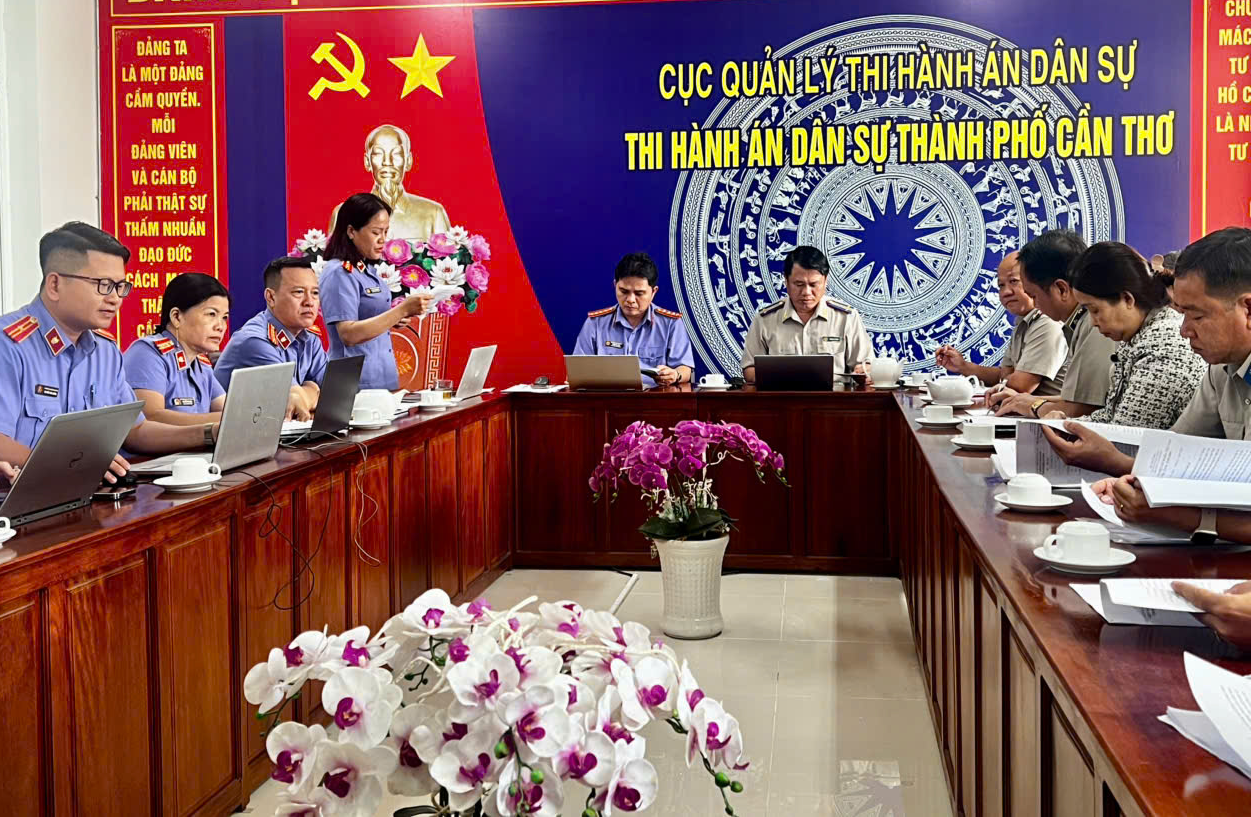 Thực hiện Quyết định trực tiếp kiểm sát số 19/QĐ-VKS-P11 và Kế hoạch số 19/KH-VKS-P11 cùng ngày 18/10/2025 của Viện trưởng Viện kiểm sát nhân dân (VKSND) thành phố Cần Thơ về việc trực tiếp kiểm sát hoạt động thi hành án dân sự (THADS) tại Phòng THADS Khu vực 12 - Cần Thơ. Cuộc trực tiếp kiểm sát kết thúc và đã hoàn thành dự thảo kết luận, VKSND thành phố Cần Thơ tiến hành buổi công bố dự thảo kết luận.