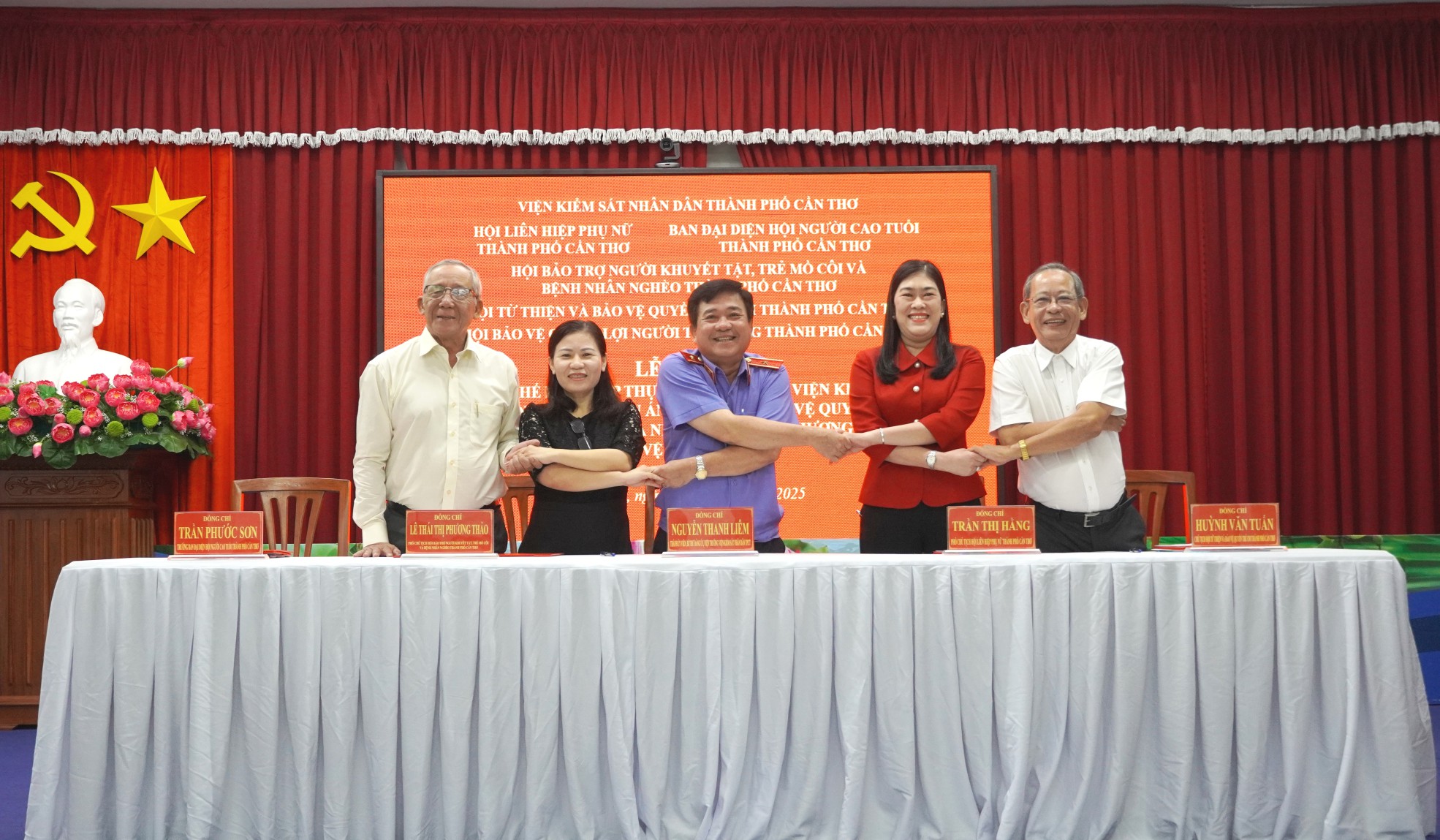 Về phía các đơn vị ký kết quy chế phối hợp có đại diện lãnh đạo các Hội, Ban đại diện Hội thành phố Cần Thơ: bà Trần Thị Hằng, Phó Chủ tịch Hội Liên hiệp Phụ nữ thành phố; ông Trần Phước Sơn, Trưởng Ban Đại diện Hội Người cao tuổi thành phố; bà Lê Thái Thị Phương Thảo, Phó Chủ tịch Hội Bảo trợ người khuyết tật, trẻ mồ côi và bệnh nhân nghèo thành phố; ông Huỳnh Văn Tuấn, Chủ tịch Hội Từ thiện và Bảo vệ quyền trẻ em thành phố.
